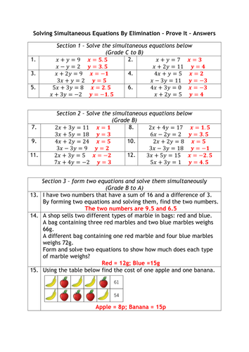 Simultaneous Equations Worksheet With Answers Tes